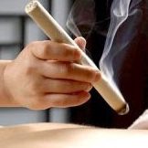 Moxibustion- Involves burning ground mugwort with a stick, cones or Moxa box, warming and strengthening Qi and blood. This can be a very relaxing treatment.